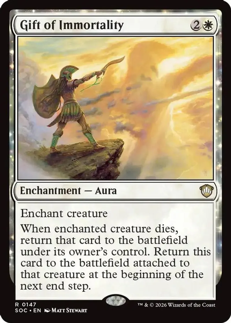 Magic: the Gathering (mtg) Rare enchantment — aura Gift of Immortality from Commander: Secrets of Strixhaven (SOC) last updated 2026-04-20 14:19:09