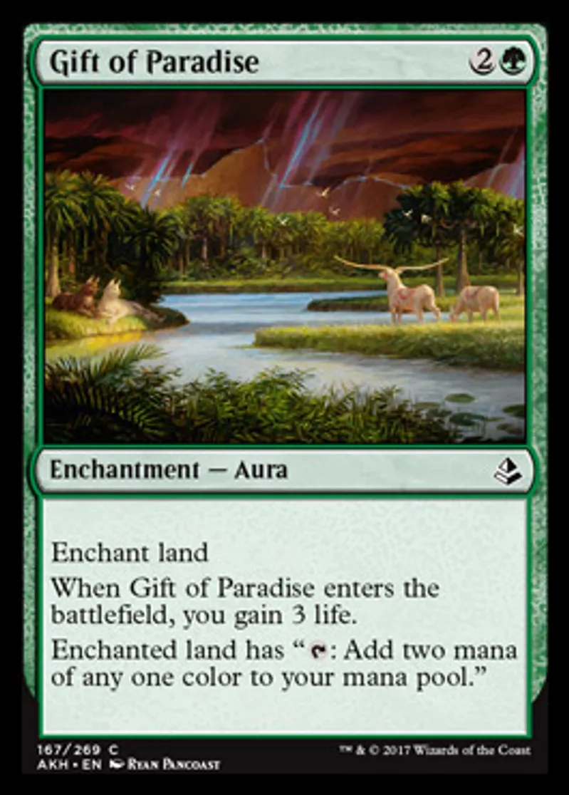 Magic: the Gathering (mtg) Common Enchantment - Aura Gift of Paradise from Amonkhet (AKH) last updated 2026-02-21 16:46:02