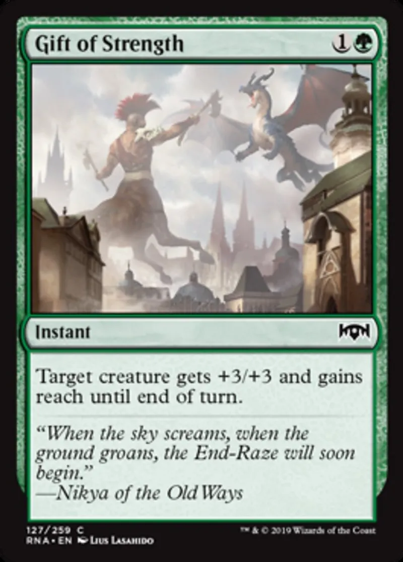 Magic: the Gathering (mtg) Common Instant Gift of Strength from Ravnica Allegiance (RNA) last updated 2026-02-21 16:56:02