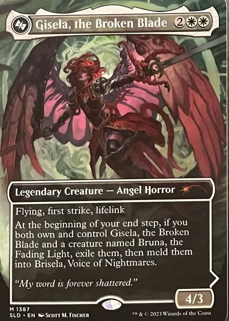 At the beginning of your end step, if you both own and control Gisela, the Broken Blade and a creature named Bruna, the Fading Light, exile them, then meld them into Brisela, Voice of Nightmares. | ||