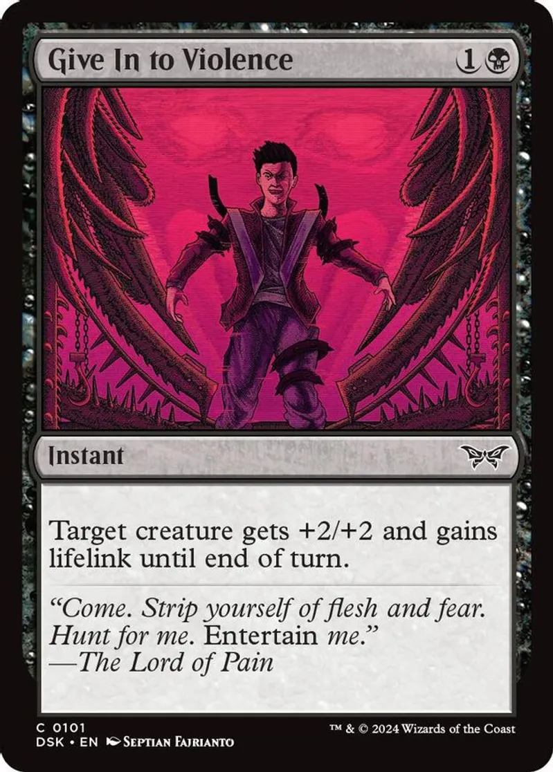 Magic: the Gathering (mtg) Common instant Give In to Violence from Duskmourn: House of Horror (DSK) last updated 2025-12-06 15:26:01