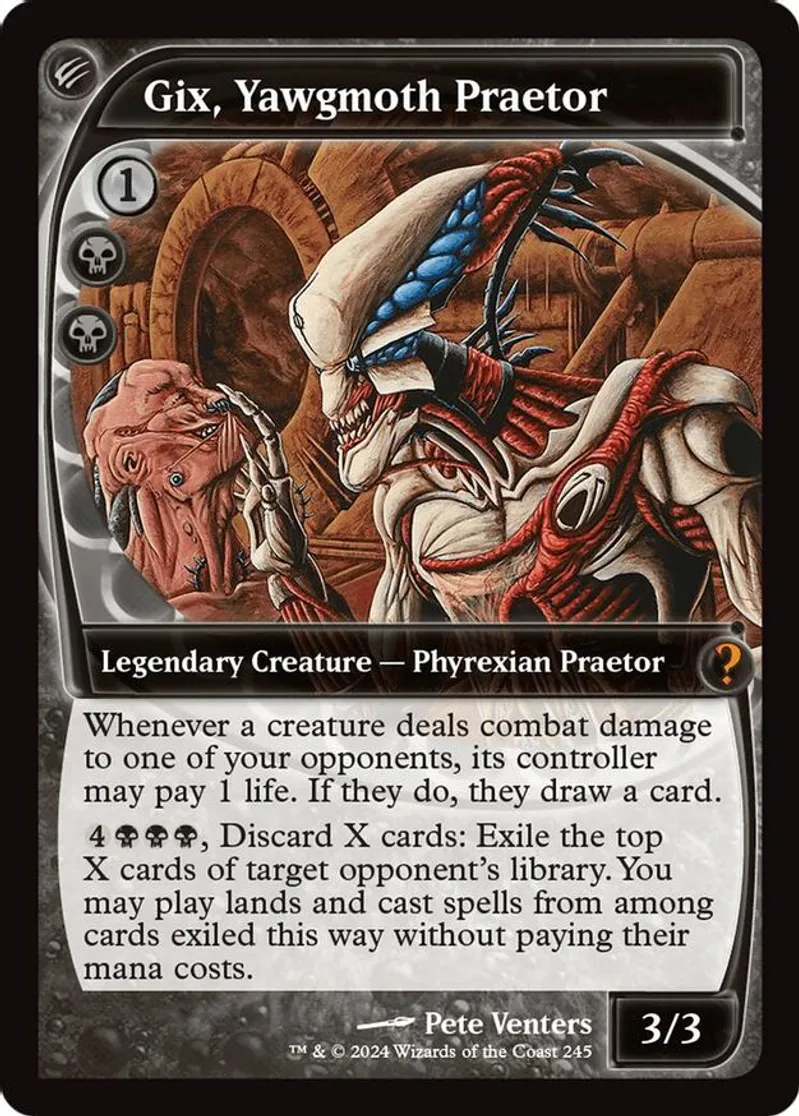 Gix, Yawgmoth Praetor (Future Sight) is a Mythic Rare in the set Mystery Booster 2.