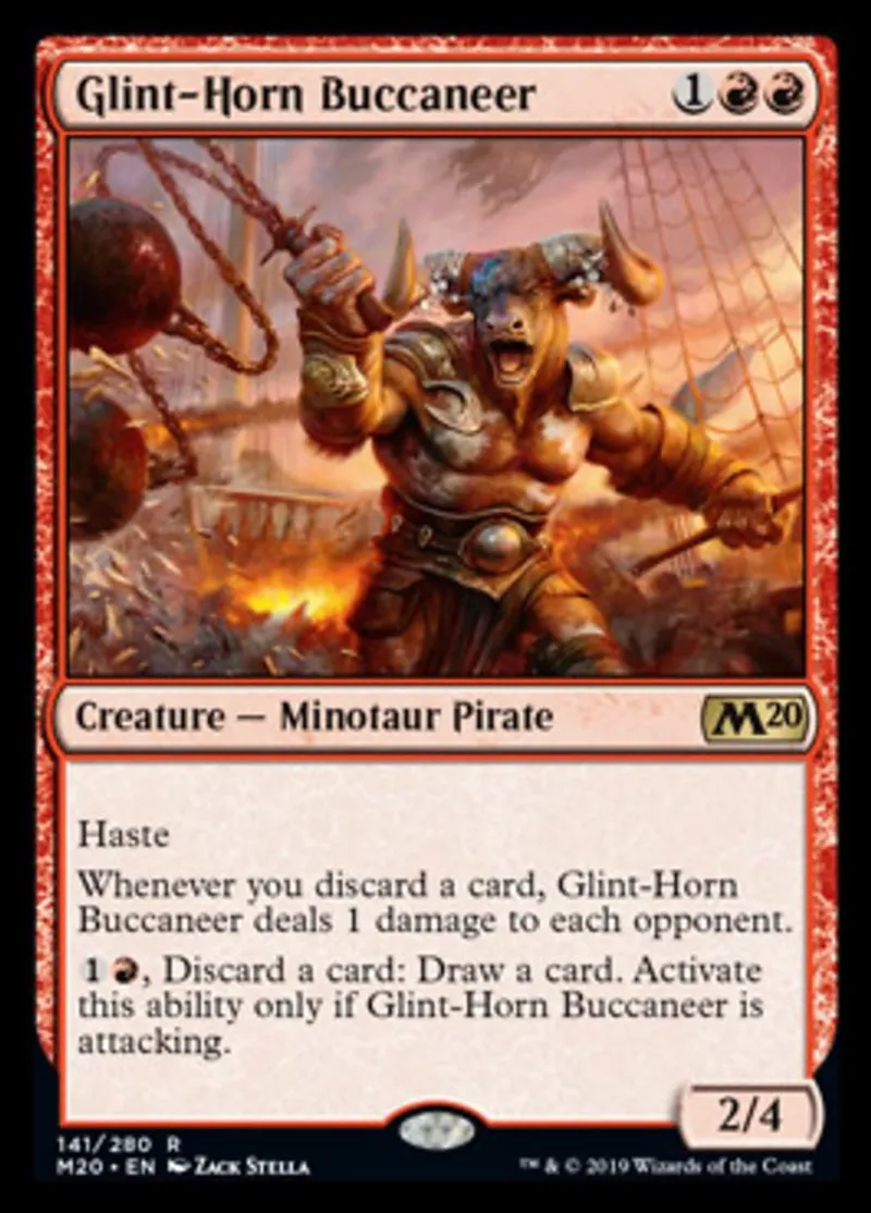Magic: the Gathering (mtg) Rare Creature — Minotaur Pirate Glint-Horn Buccaneer from Core Set 2020 (M20) last updated 2026-02-24 16:08:32