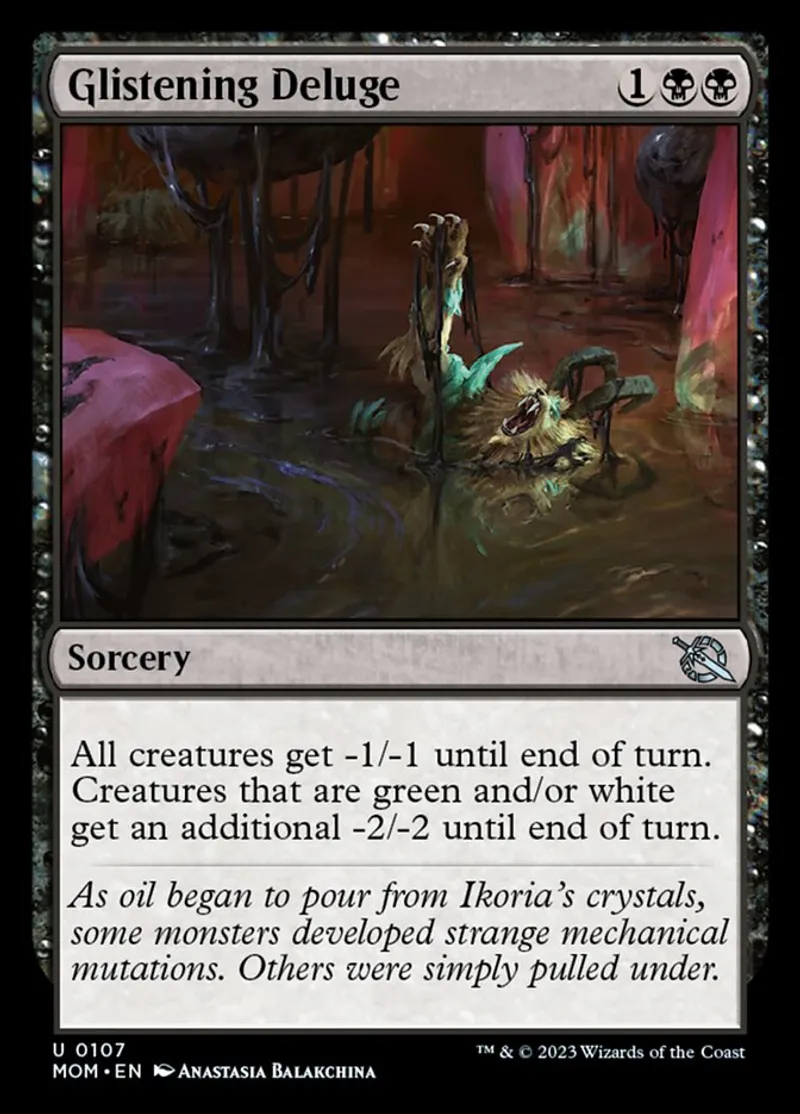 Magic: the Gathering (mtg) uncommon Sorcery Glistening Deluge from March of the Machine (mom) last updated 2026-02-21 16:22:32