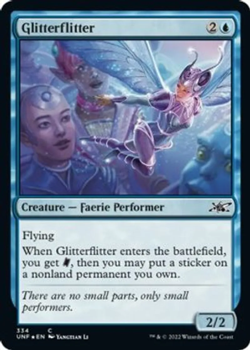 Magic: the Gathering (mtg) Common Creature — Faerie Performer Glitterflitter from Unfinity (UNF) last updated 2026-02-21 16:13:01