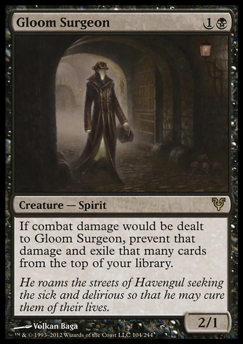| Oracle Text | If combat damage would be dealt to Gloom Surgeon, prevent that damage and exile that many cards from the top of your library. | ||