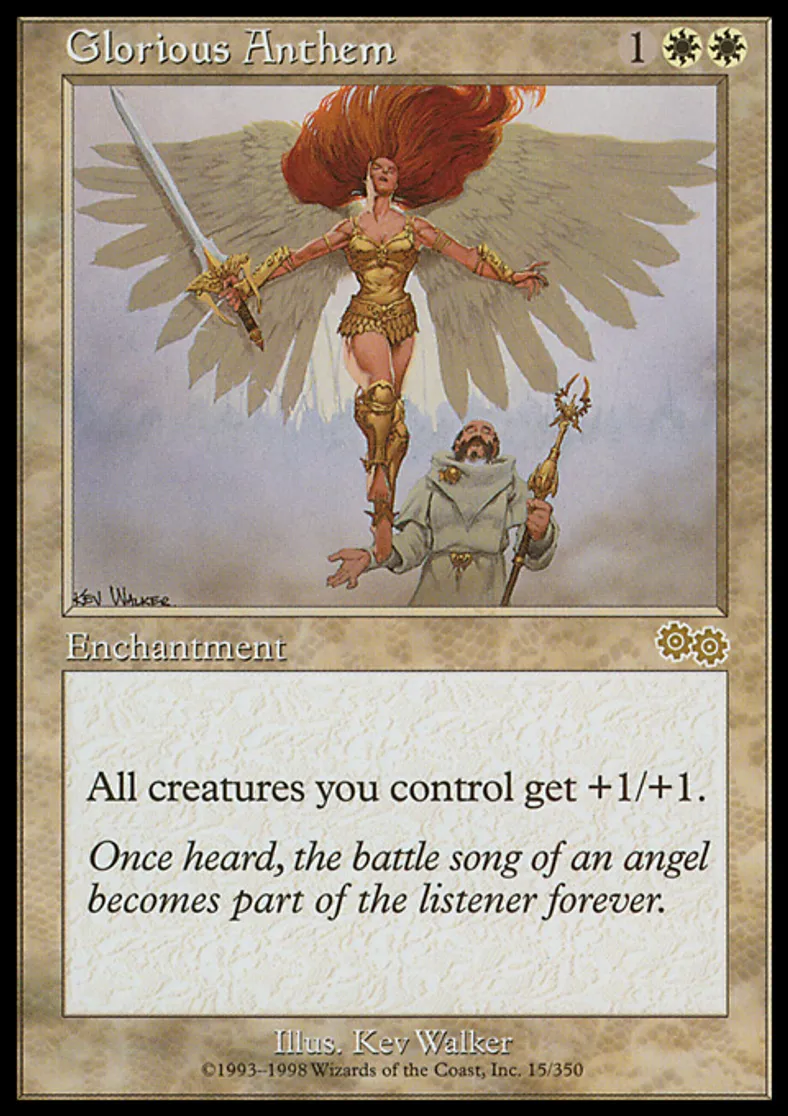 Magic: the Gathering (mtg) Rare Enchantment Glorious Anthem from Urza's Saga (USG) last updated 2026-02-08 15:07:06