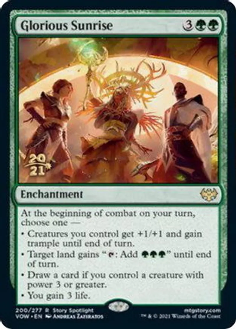 Magic: the Gathering (mtg) Rare Enchantment Glorious Sunrise from Prerelease Cards (pPRE) last updated 2026-02-24 15:35:32