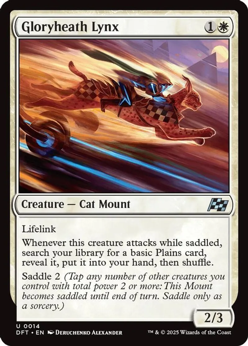 Magic: the Gathering (mtg) Uncommon creature — cat mount Gloryheath Lynx from Aetherdrift (DFT) last updated 2025-12-13 15:35:36