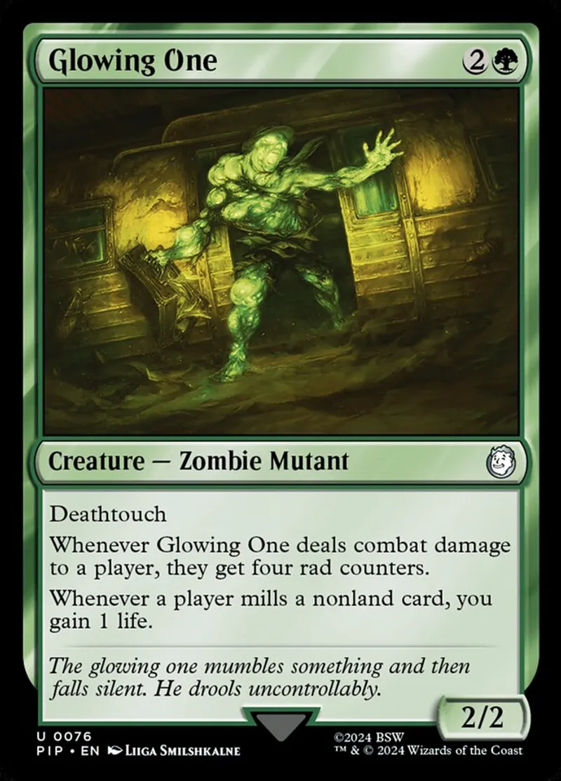Magic: the Gathering (mtg) uncommon Creature — Zombie Mutant Glowing One from Universes Beyond: Fallout (pip) last updated 2026-02-21 15:58:02