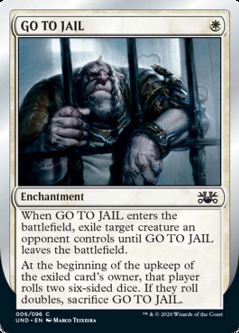 | Oracle Text | When GO TO JAIL enters the battlefield, exile target creature an opponent controls until GO TO JAIL leaves the battlefield.