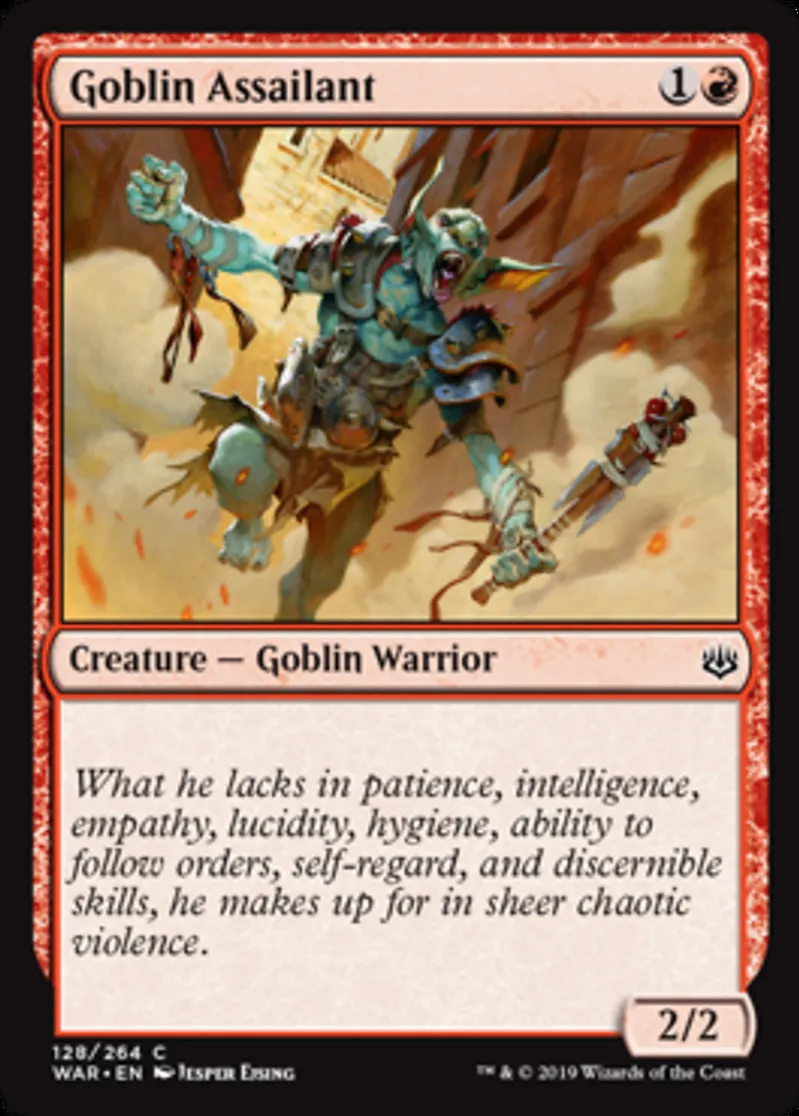 Magic: the Gathering (mtg) Common Creature — Goblin Warrior Goblin Assailant from War of the Spark (WAR) last updated 2026-02-21 16:57:32