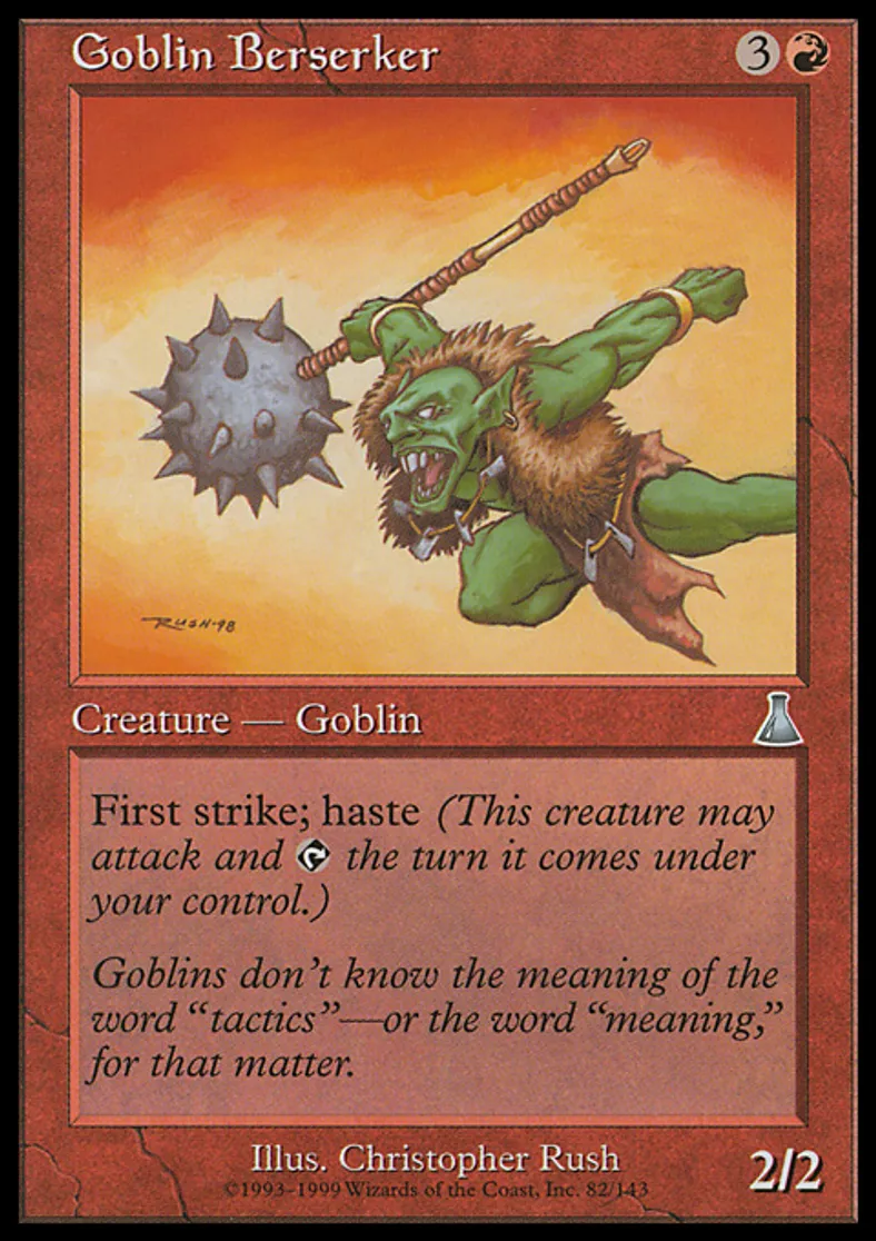 Magic: the Gathering (mtg) Uncommon Creature - Goblin Berserker Goblin Berserker from Urza's Destiny (UDS) last updated 2026-02-21 17:33:36