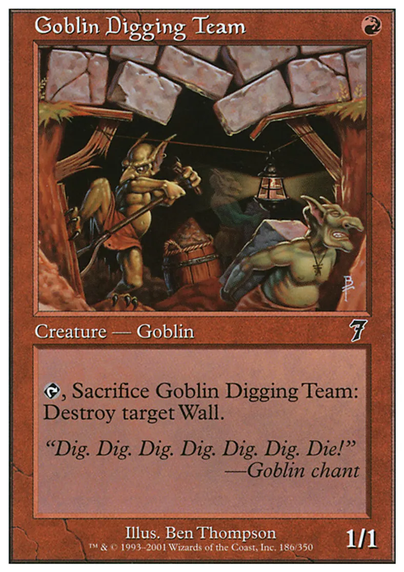 | Oracle Text | {{t}}, Sacrifice Goblin Digging Team: Destroy target Wall. | ||