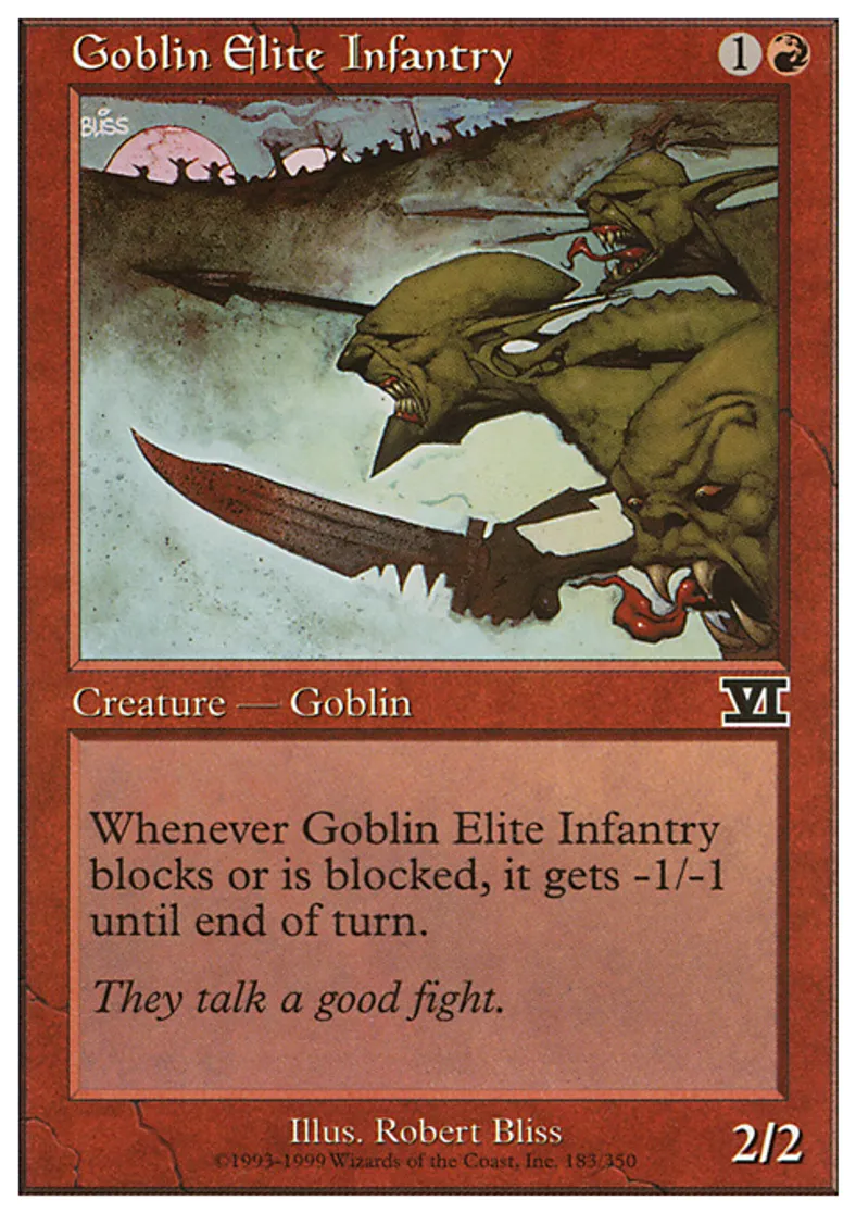 Magic: the Gathering (mtg) Common Creature - Goblin Warrior Goblin Elite Infantry from Classic Sixth Edition (6ED) last updated 2026-01-17 15:11:32