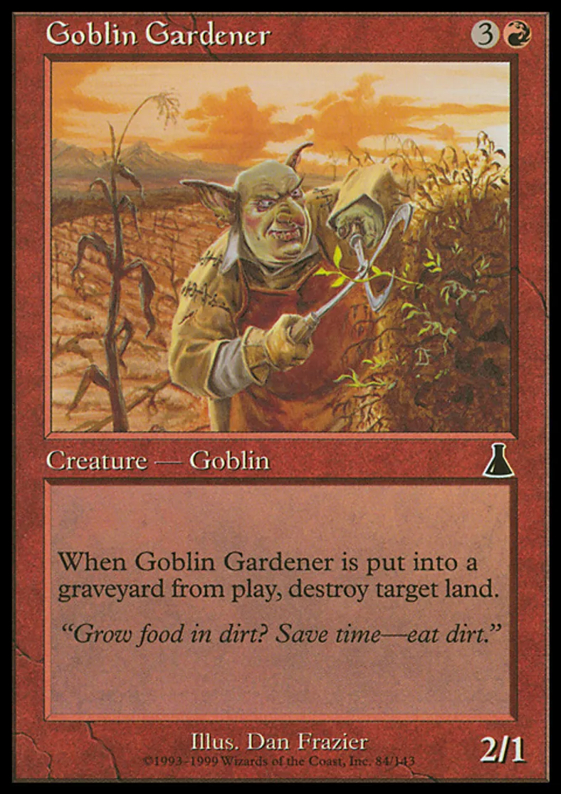 | Oracle Text | When Goblin Gardener dies, destroy target land. | ||