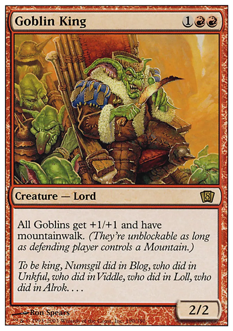 Magic: the Gathering (mtg) Rare Creature - Goblin Goblin King from Eighth Edition (8ED) last updated 2026-02-24 15:08:03