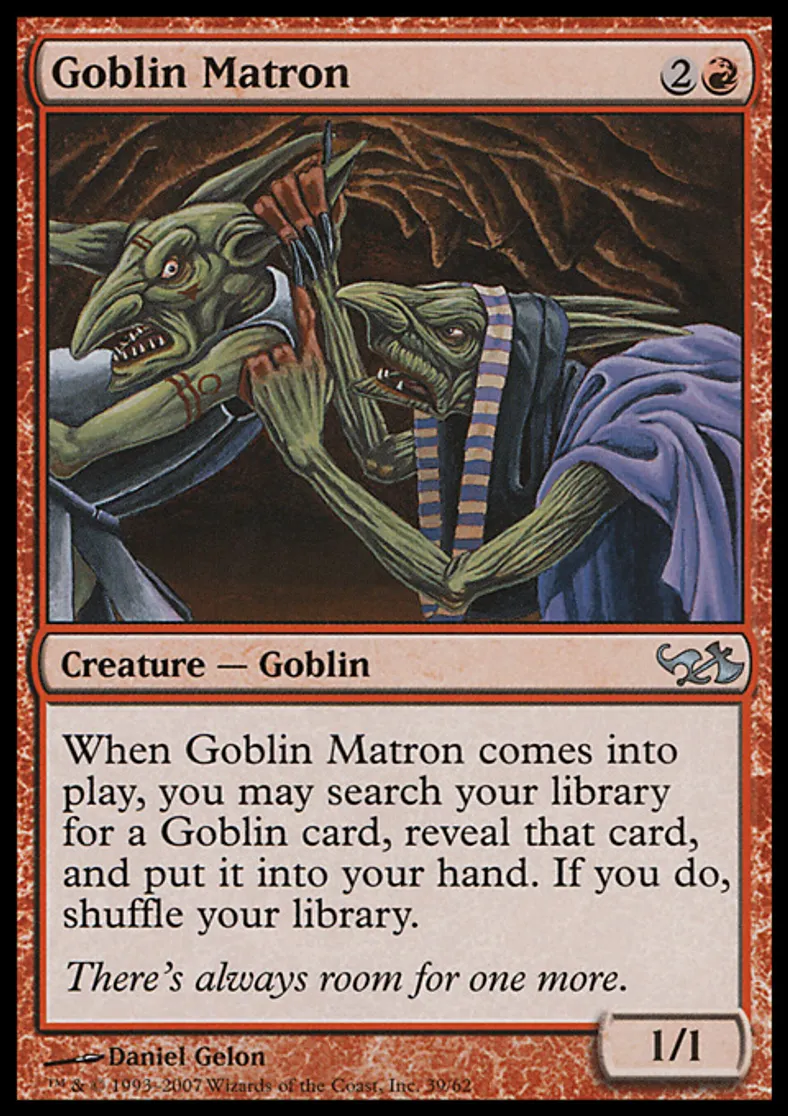 | Oracle Text | When Goblin Matron enters the battlefield, you may search your library for a Goblin card, reveal that card, and put it into your hand. If you do, shuffle your library. | ||