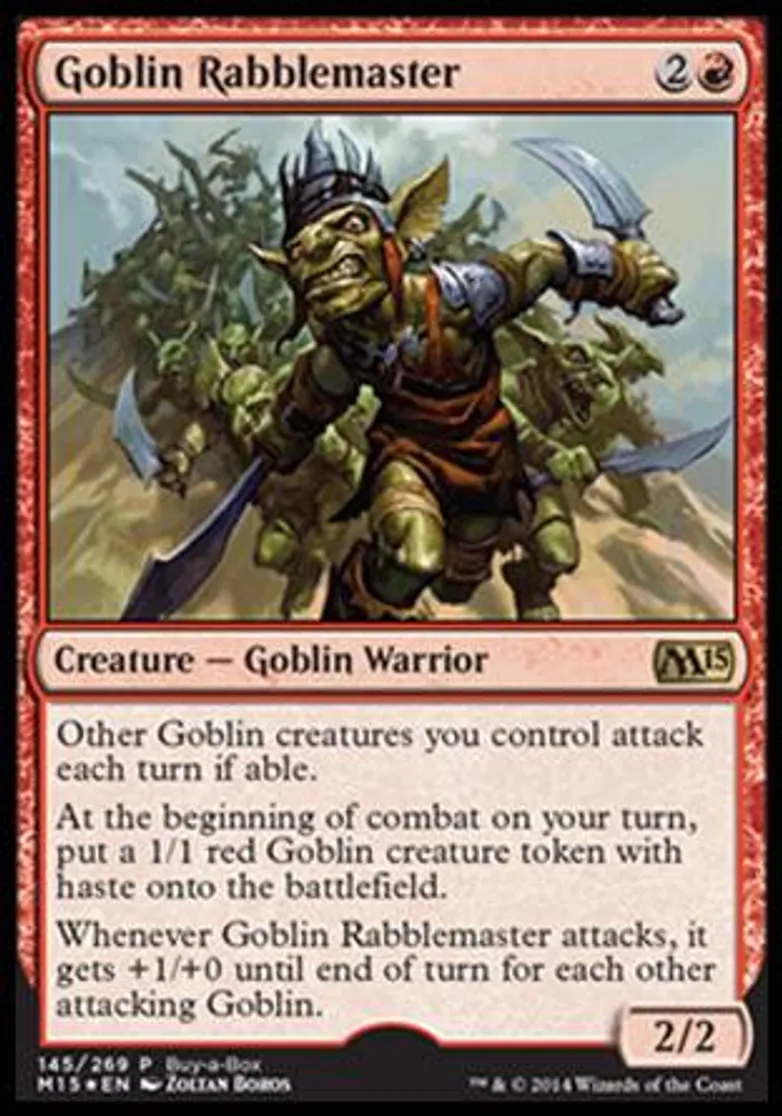 Magic: the Gathering (mtg) Special Creature - Goblin Warrior Goblin Rabblemaster from Buy-a-Box Promos (BAB) last updated 2026-02-21 17:18:32