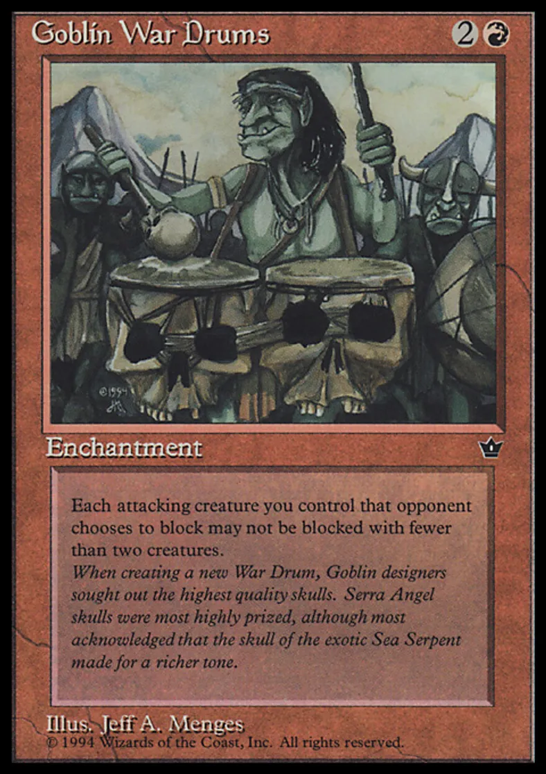 Goblin War Drums (Menges) is a Common in the set Fallen Empires.