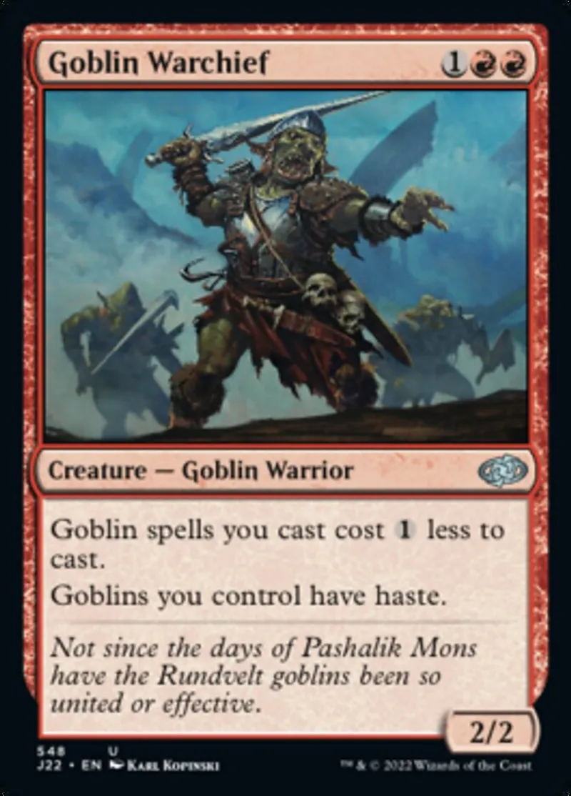 Magic: the Gathering (mtg) uncommon Creature — Goblin Warrior Goblin Warchief from Jumpstart 2022 (j22) last updated 2026-02-24 14:56:02