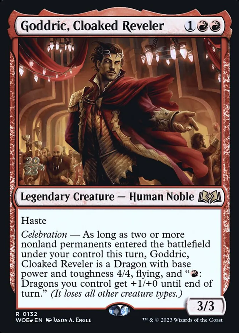 Magic: the Gathering (mtg) Rare Legendary Creature — Human Noble Goddric, Cloaked Reveler from Prerelease Cards (pPRE) last updated 2026-02-21 15:47:32