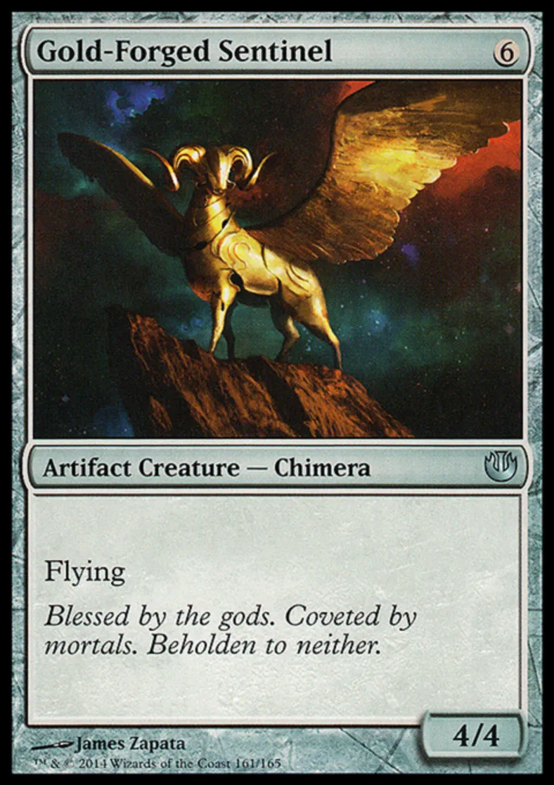 Magic: the Gathering (mtg) Uncommon Artifact Creature - Chimera Gold-Forged Sentinel from Journey into Nyx (JOU) last updated 2026-02-21 17:16:32