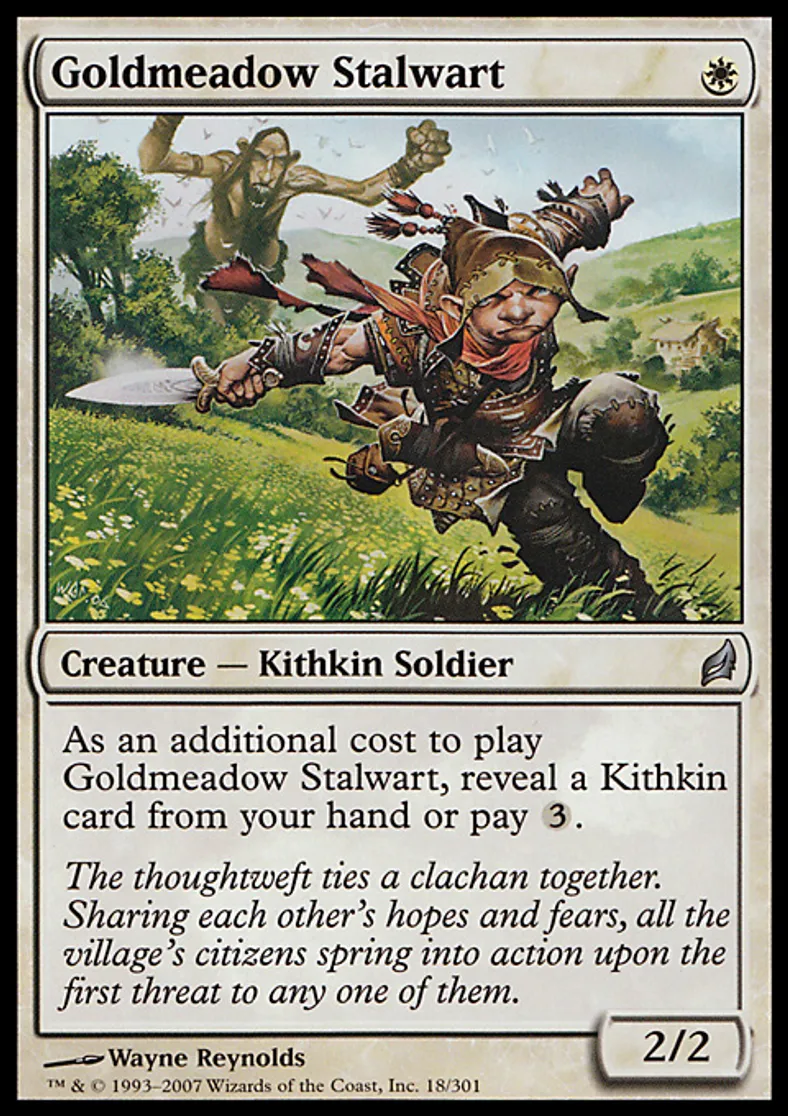 Magic: the Gathering (mtg) Uncommon Creature - Kithkin Soldier Goldmeadow Stalwart from Lorwyn (LRW) last updated 2026-02-21 17:45:07