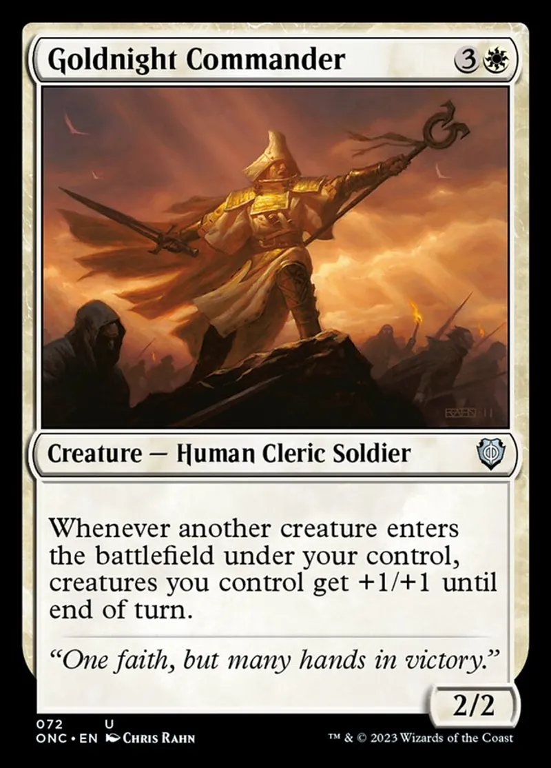 Magic: the Gathering (mtg) uncommon Creature — Human Cleric Soldier Goldnight Commander from Phyrexia: All Will Be One Commander (onc) last updated 2026-02-21 16:20:01