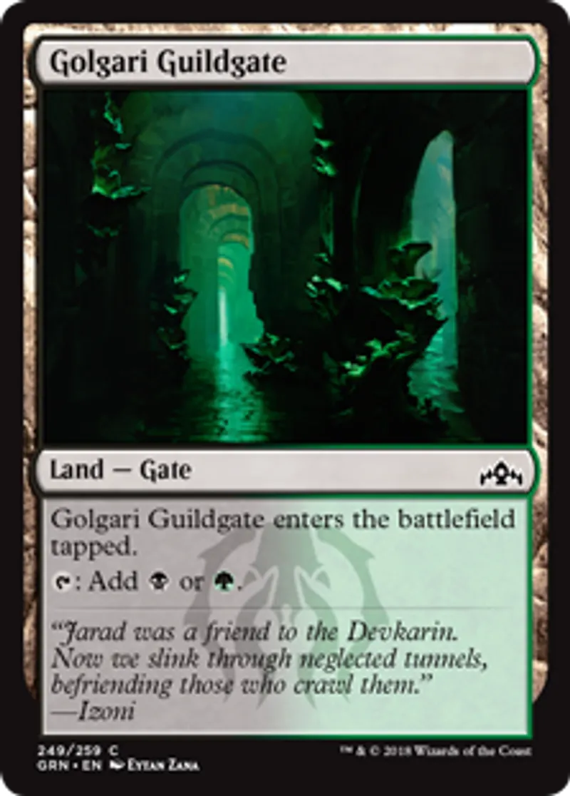 | Oracle Text | Golgari Guildgate enters the battlefield tapped. {{t}}: Add {{b}} or {{g}}. | ||