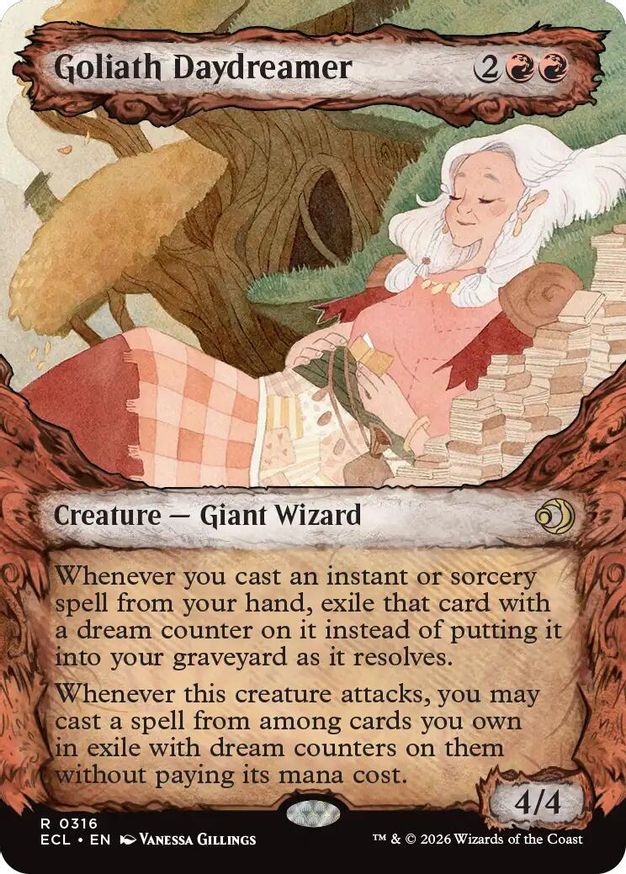 Magic: the Gathering (mtg) Rare creature — giant wizard Goliath Daydreamer from Lorwyn Eclipsed (ECL) last updated 2026-01-11 16:16:06
