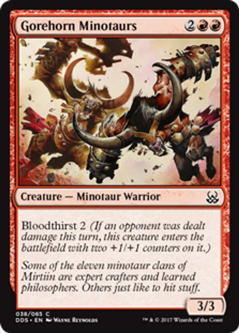 Magic: the Gathering (mtg) Common Creature - Minotaur Warrior Gorehorn Minotaurs from Duel Decks: Mind vs. Might (DDS) last updated 2026-02-21 16:45:32