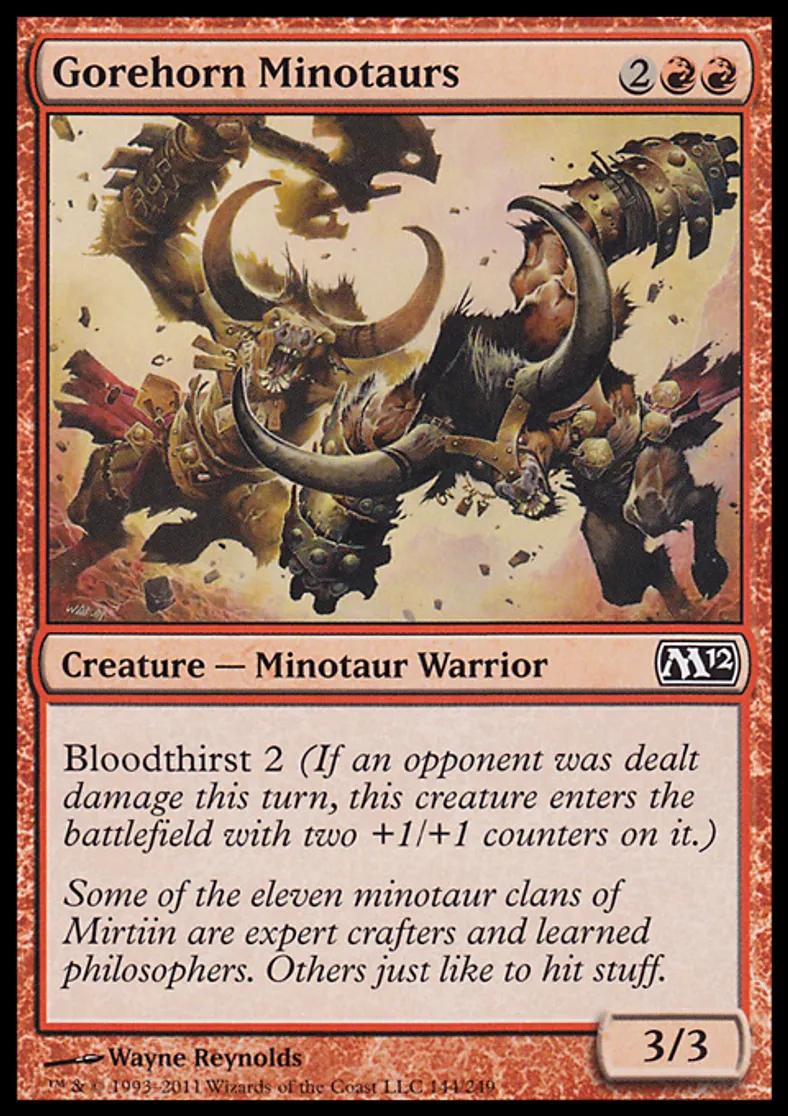 Magic: the Gathering (mtg) Common Creature - Minotaur Warrior Gorehorn Minotaurs from Magic 2012 (M12) last updated 2026-02-21 17:07:06
