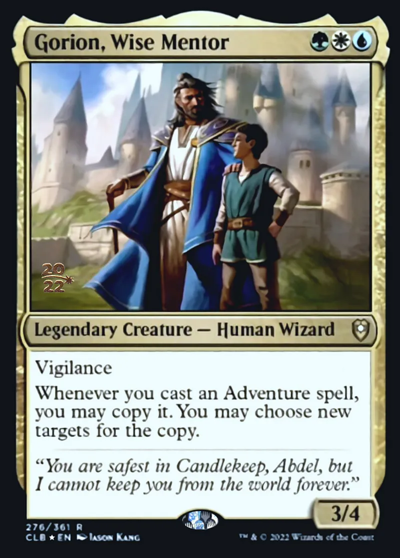Magic: the Gathering (mtg) Rare Legendary Creature — Human Wizard Gorion, Wise Mentor from Prerelease Cards (pPRE) last updated 2026-02-25 15:38:16