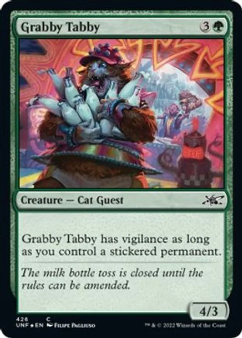 | Oracle Text | Grabby Tabby has vigilance as long as you control a stickered permanent. | ||