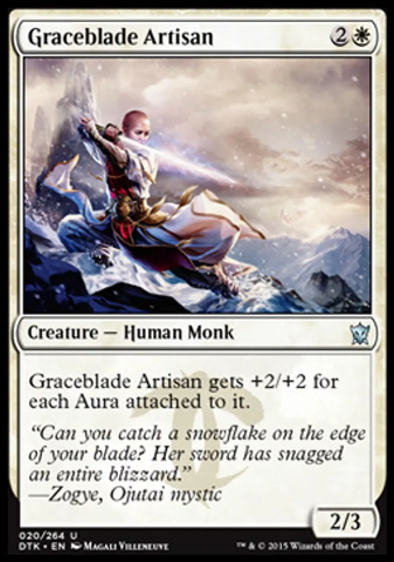 | Oracle Text | Graceblade Artisan gets +2/+2 for each Aura attached to it. | ||