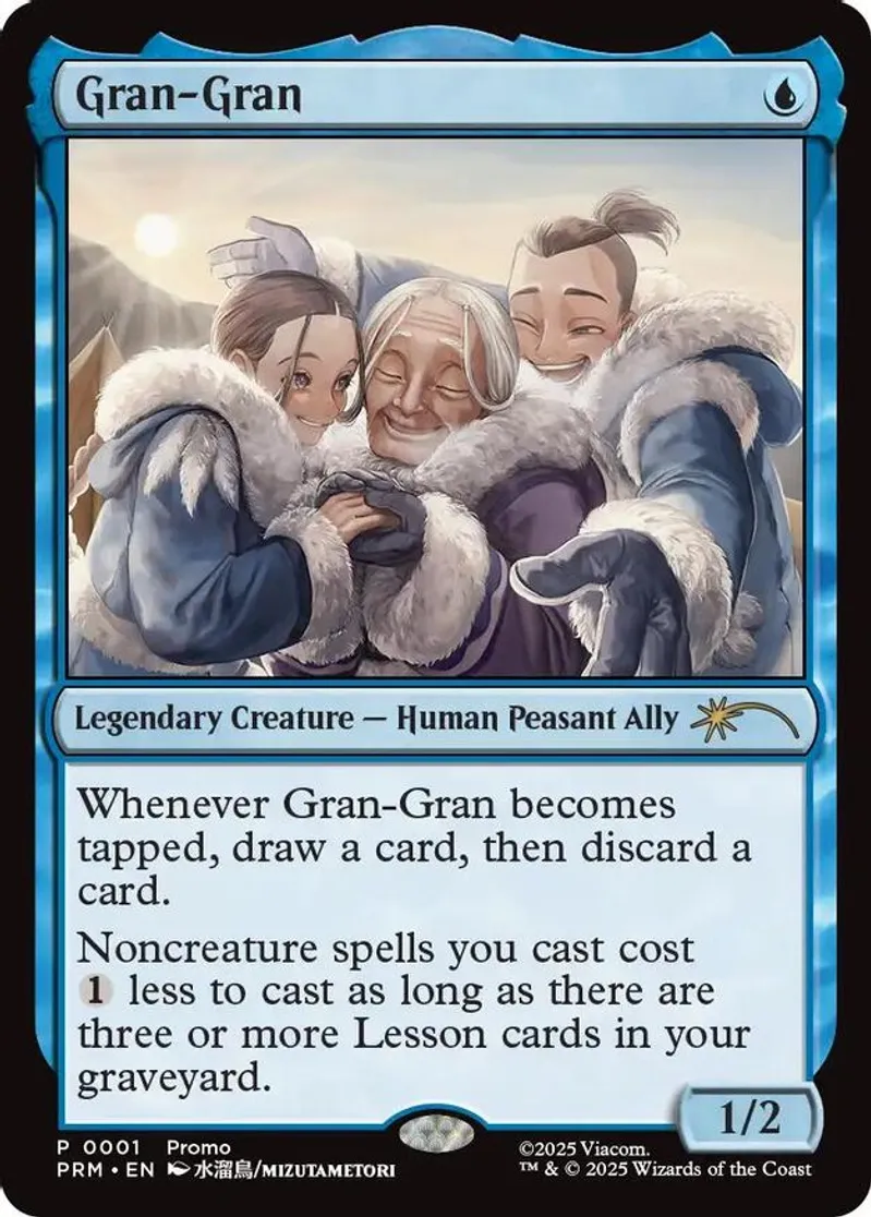 Magic: the Gathering (mtg) Promo legendary creature — human peasant ally Gran-Gran from Unique and Miscellaneous Promos (pUNI) last updated 2026-01-19 14:52:02
