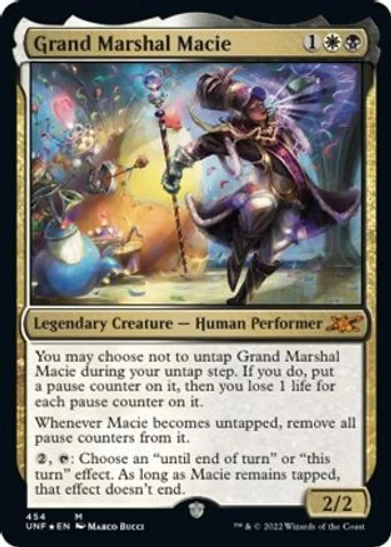 | Oracle Text | You may choose not to untap Grand Marshal Macie during your untap step. If you do, put a pause counter on it, then you lose 1 life for each pause counter on it.