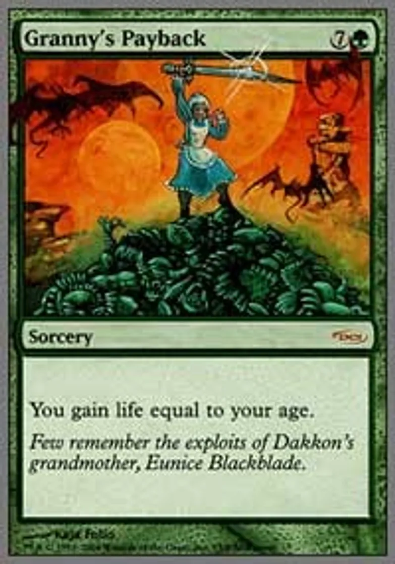 Magic: the Gathering (mtg) Special Sorcery Granny's Payback from Arena Promos (pARL) last updated 2026-02-25 15:11:03
