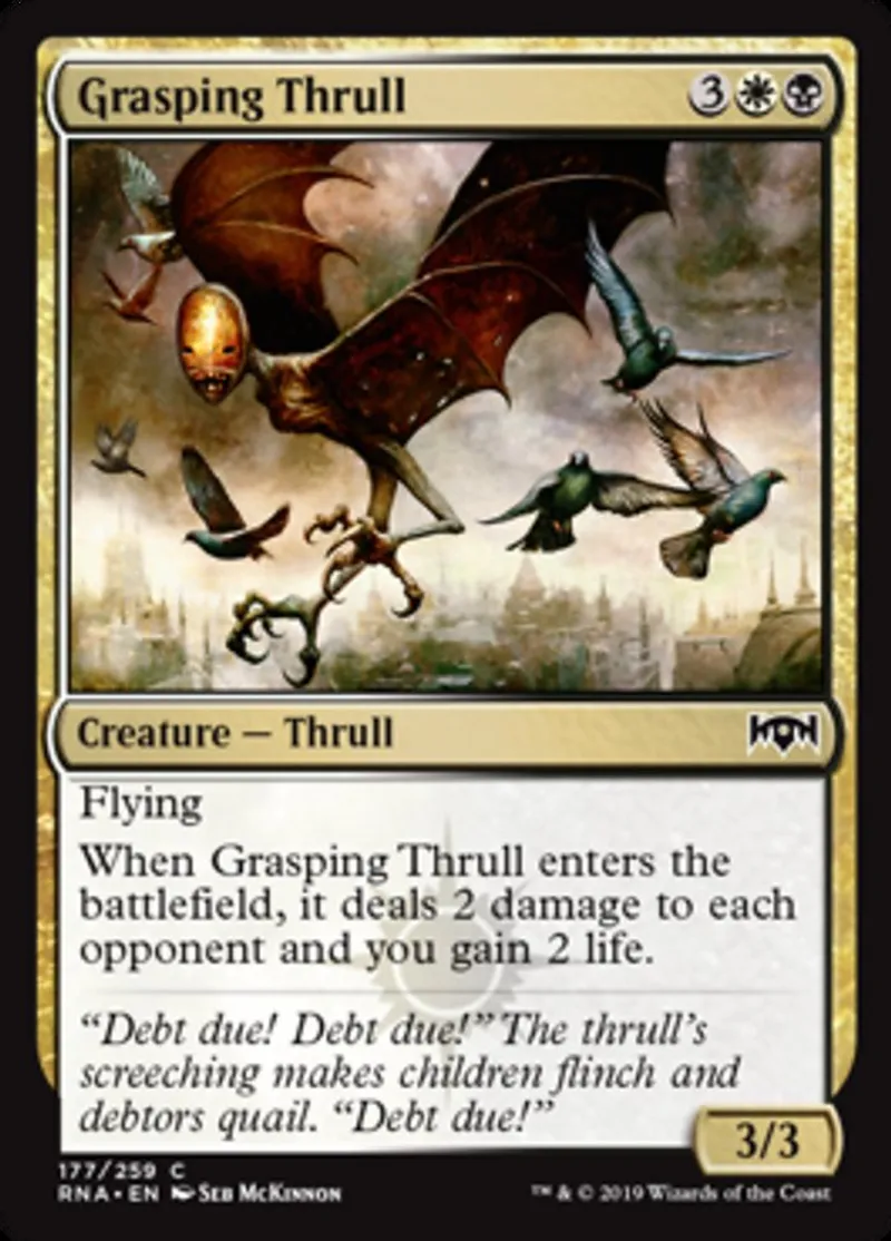 When Grasping Thrull enters the battlefield, it deals 2 damage to each opponent and you gain 2 life. | ||