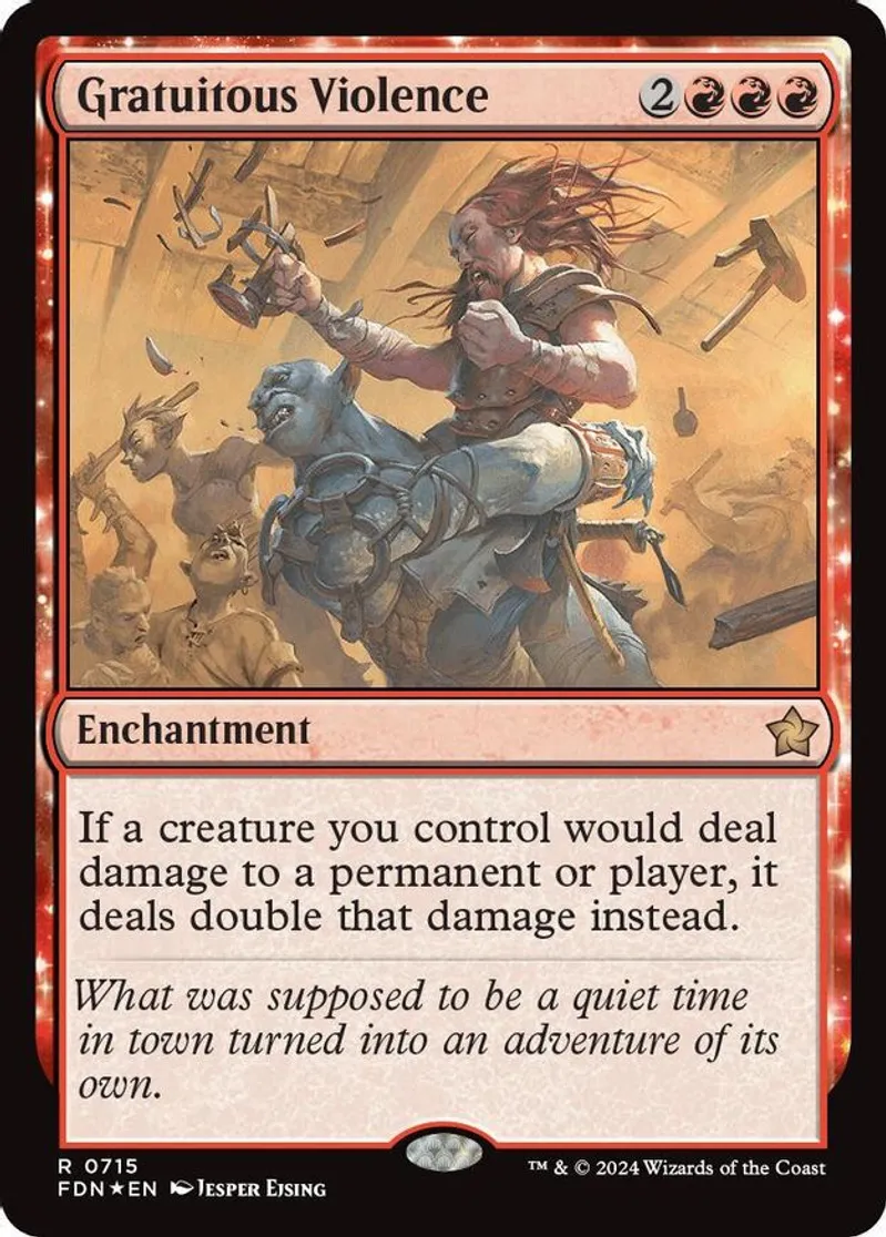Magic: the Gathering (mtg) Rare enchantment Gratuitous Violence from Foundations (FDN) last updated 2026-02-21 15:32:06