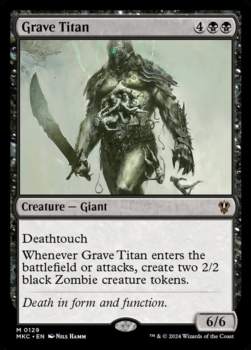 Grave Titan is a mythic in the set Murders at Karlov Manor Commander.