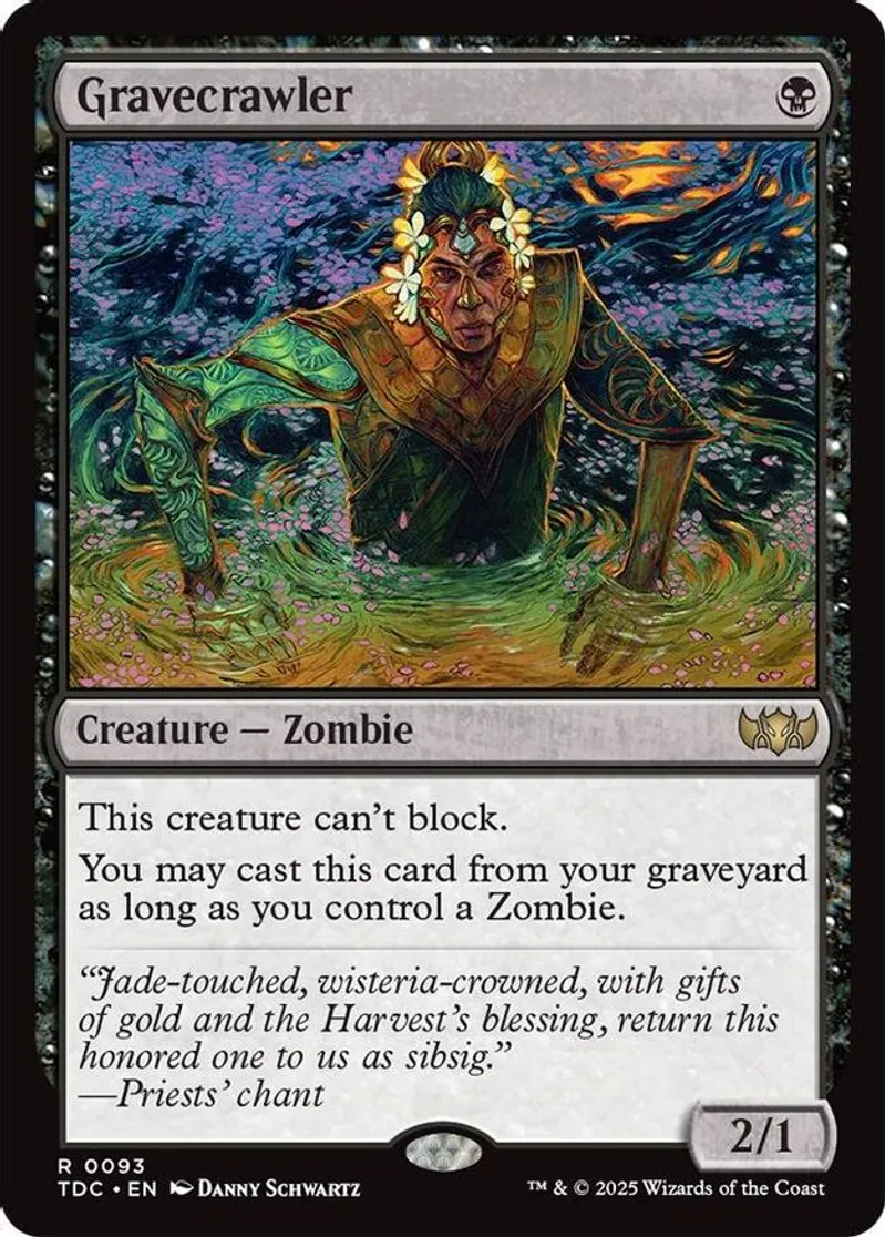 Magic: the Gathering (mtg) Rare creature — zombie Gravecrawler from Commander: Tarkir: Dragonstorm (TDC) last updated 2026-04-02 15:24:04