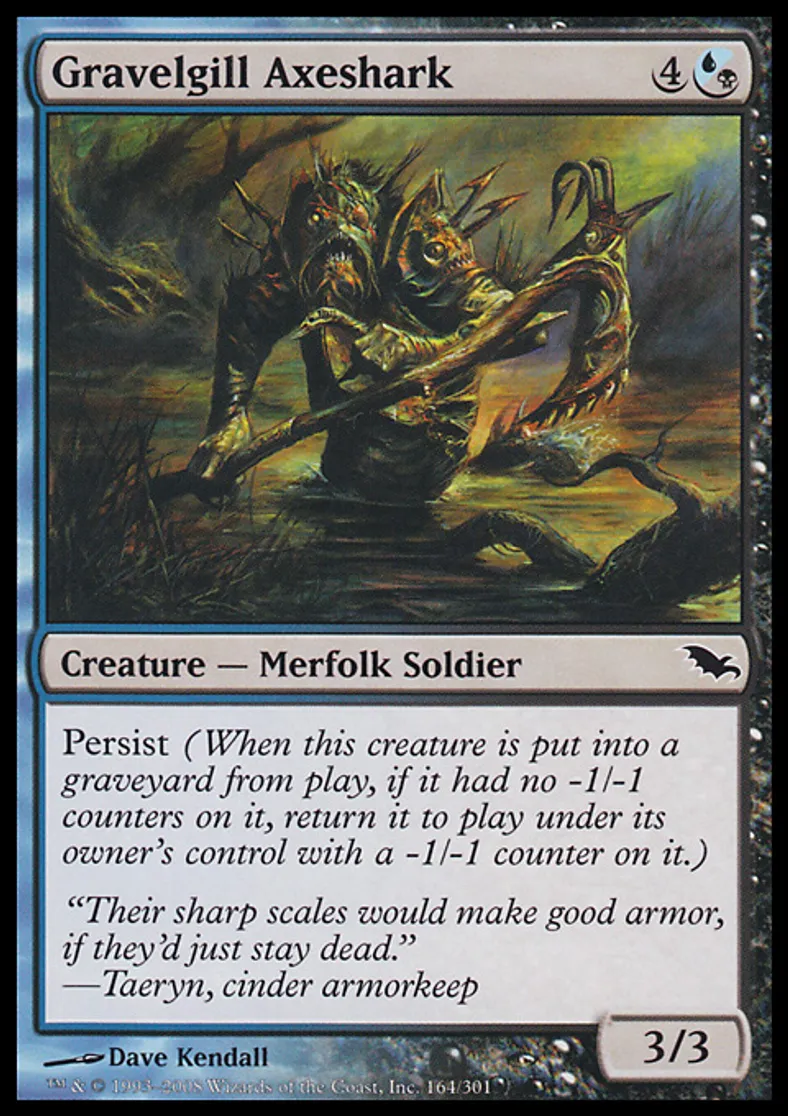 Magic: the Gathering (mtg) Common Creature - Merfolk Soldier Gravelgill Axeshark from Shadowmoor (SHM) last updated 2026-02-21 17:45:07
