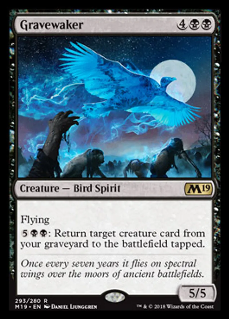 Magic: the Gathering (mtg) Rare Creature - Bird Spirit Gravewaker from Core Set 2019 (M19) last updated 2026-02-21 16:53:03