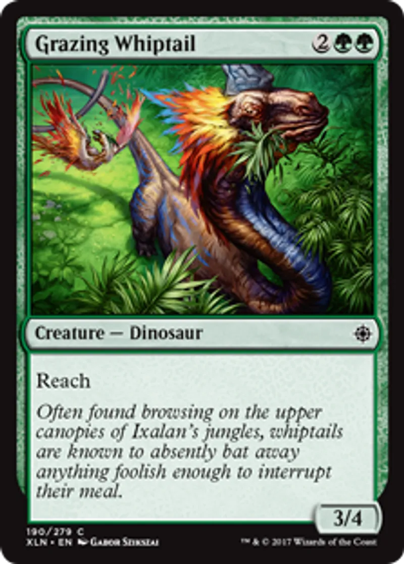 Magic: the Gathering (mtg) Common Creature - Dinosaur Grazing Whiptail from Ixalan (XLN) last updated 2026-02-21 16:48:04