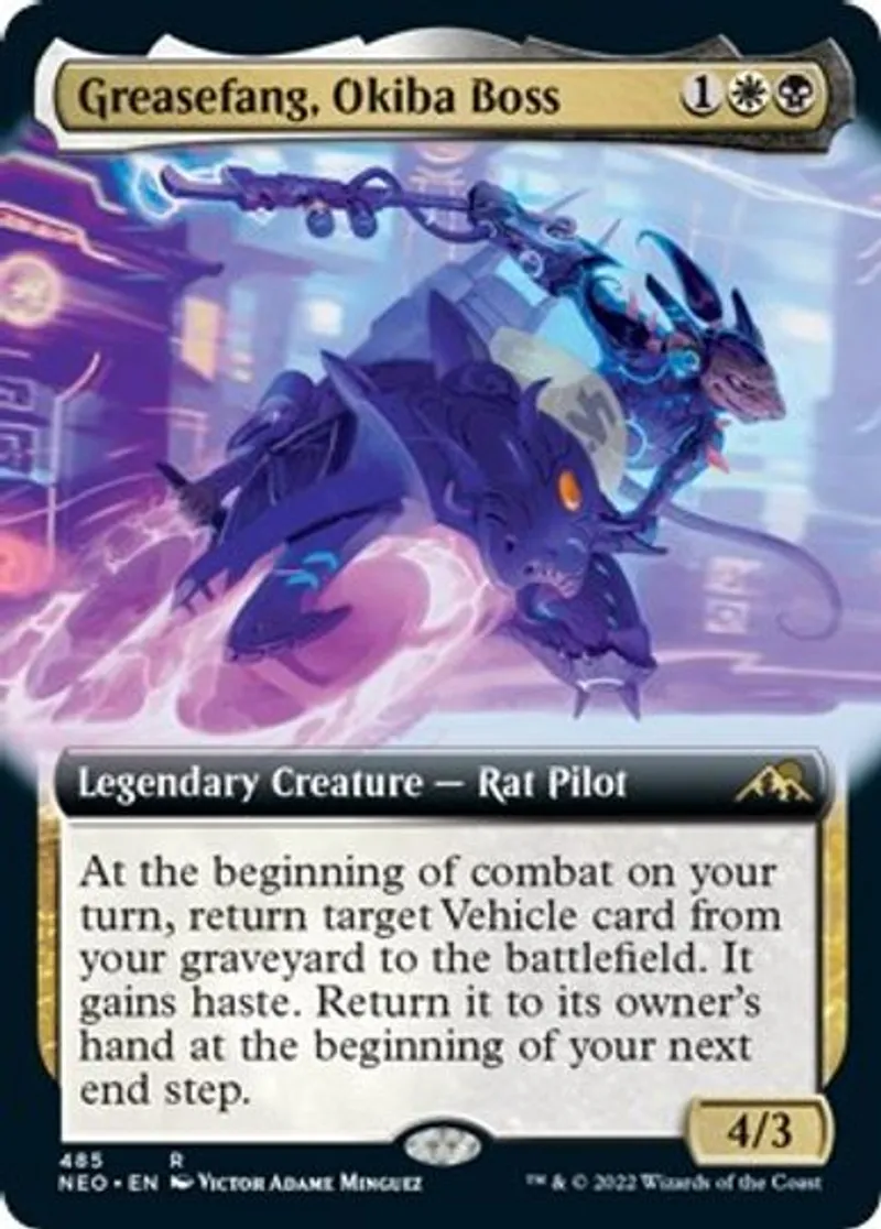 Greasefang, Okiba Boss (Extended Art) is a Rare in the set Kamigawa: Neon Dynasty.