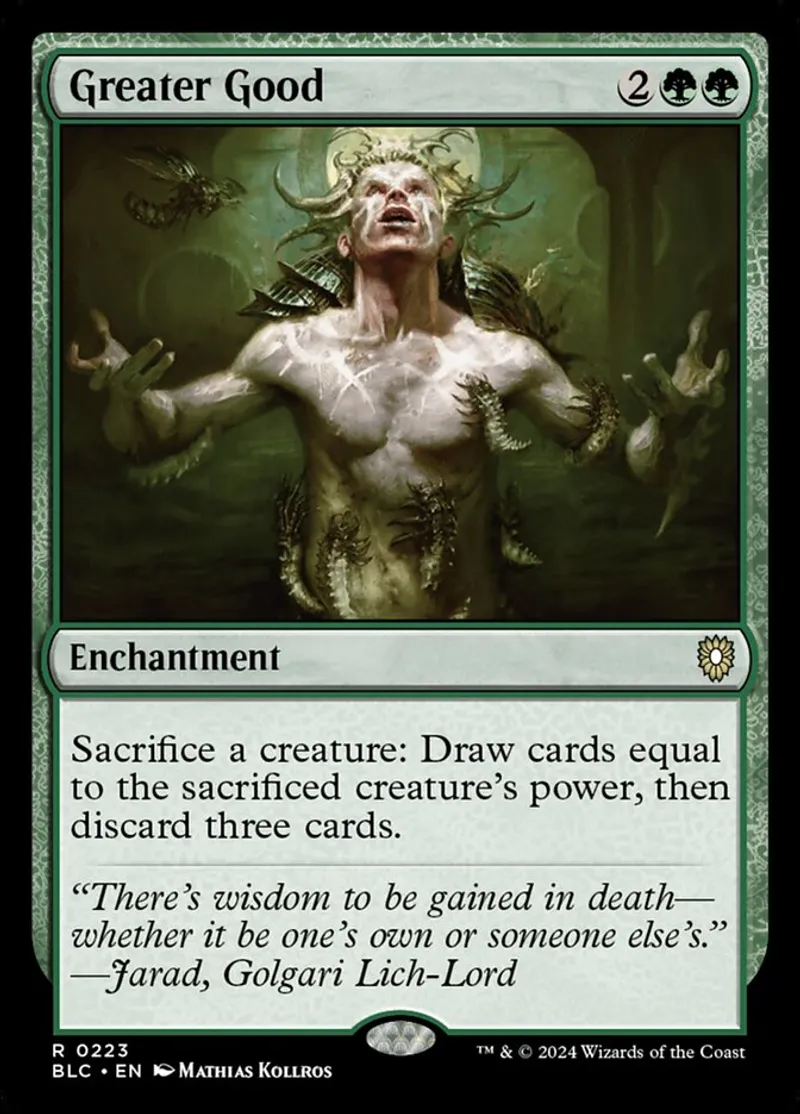 Magic: the Gathering (mtg) rare Enchantment Greater Good from Bloomburrow Commander (blc) last updated 2026-02-25 14:49:36