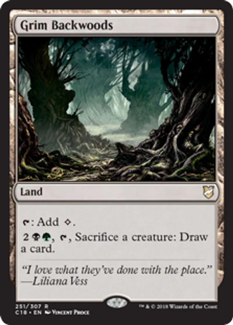 Magic: the Gathering (mtg) Rare Land Grim Backwoods from Commander 2018 (C18) last updated 2026-02-21 16:53:32