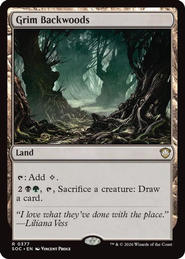 | Commander: Secrets of Strixhaven Grim Backwoods | $0.89 | — |